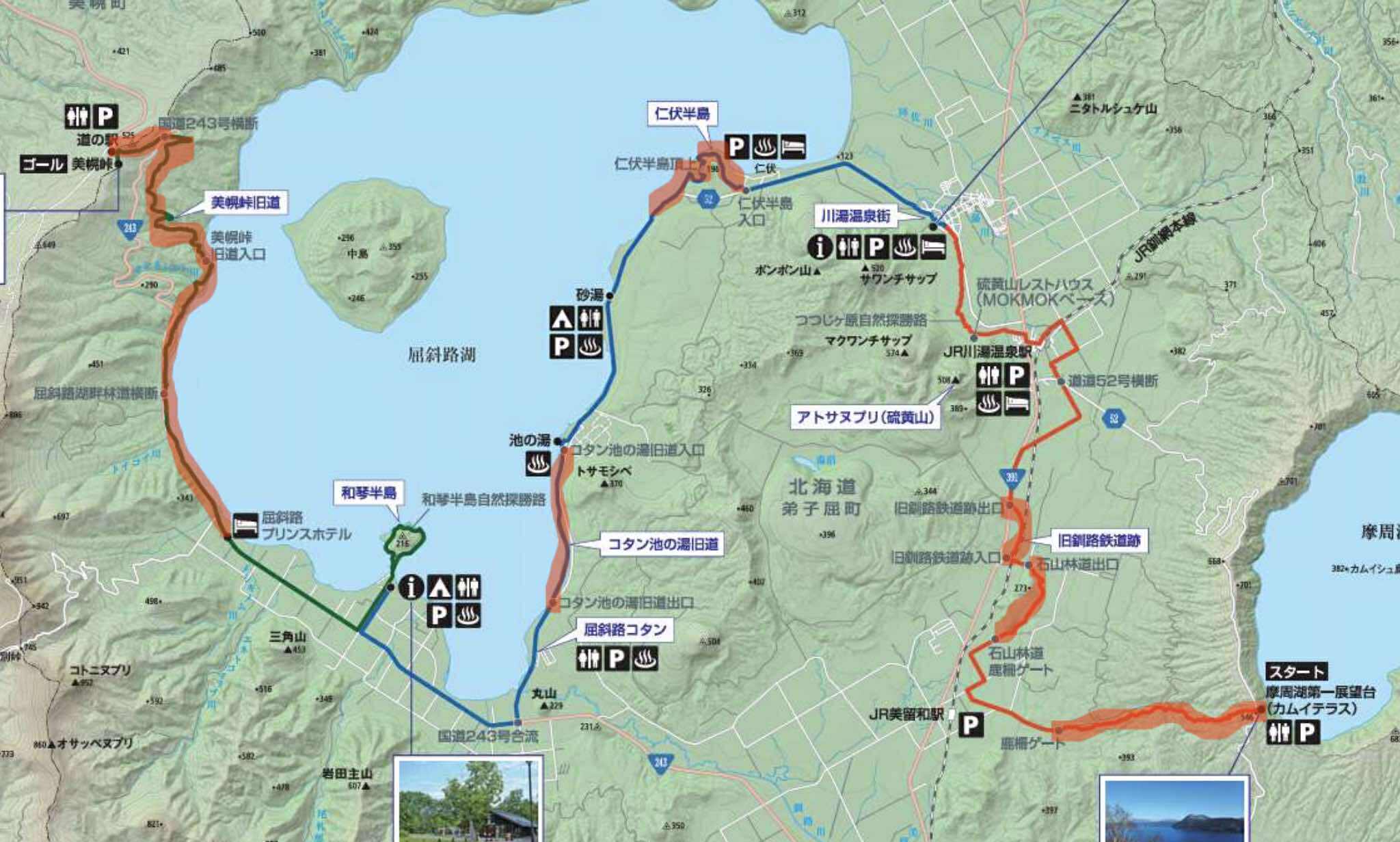 セクション1摩周湖第一展望台~美留和林道の区間はまだ残雪ありです。