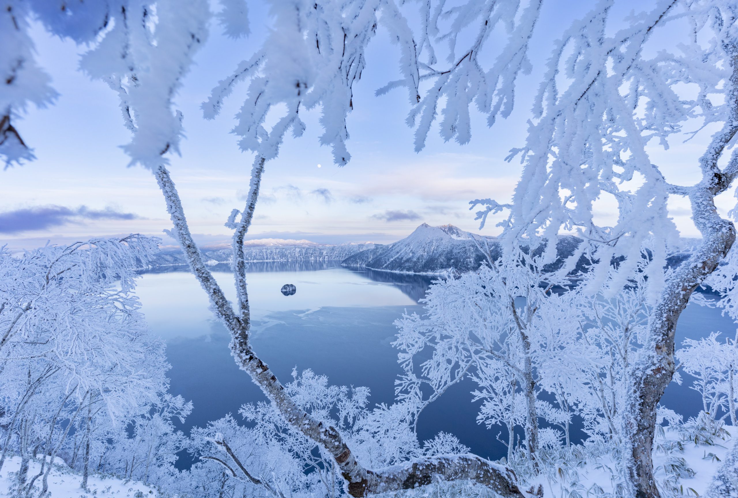 例年12月末になると雪が積もり根雪になります。冬至のころから2月にかけてが、一年で最も寒い季節です。その頃、屈斜路湖は全面結氷。摩周湖も数年に一度全面結氷します。冬晴れが多く、厳しい冷え込みで最低気温が-30℃近くまで下がる日もあります。最高気温も氷点下ですが、晴れていれば太陽の光が強いので、気温以上にポカポカと暖かく感じます。しかし、ほんの数日だけ猛烈なブリザードがやってくるので注意が必要です。