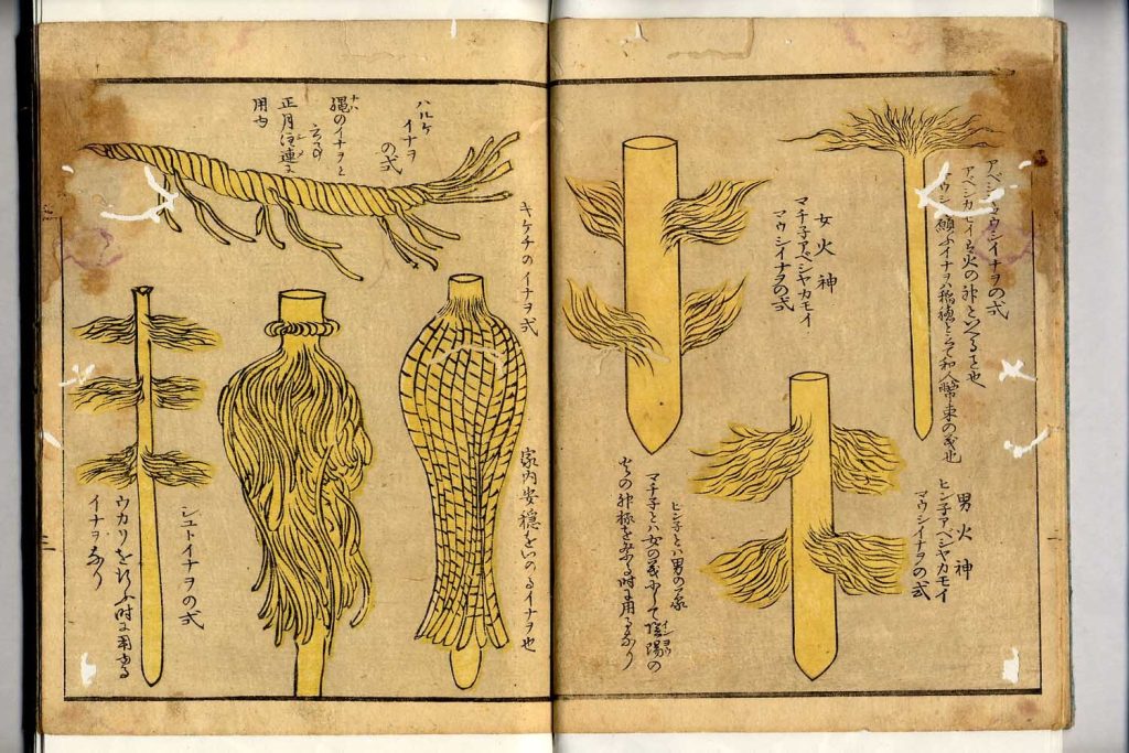 アイヌが行う儀式で欠かせないのは、イナウと呼ばれる祭具です。日本語では木幣と訳されますが、イナウはイナウというのが一番受け止めやすい感じがします。祈りを捧げるときに、カムイとアイヌの間をとりもってくれる重要な存在。再生力が高いとされるヤナギ、神の国へ行くと白金になるというミズキなどが用いられました。