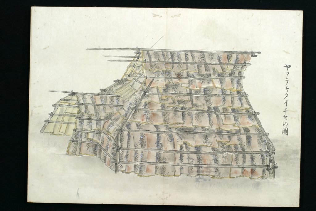チセ(家)は数種類の樹木を組み合わせて建てられ、中には囲炉裏をしつらえ、アイヌにとって重要な存在のひとつであるアペフチカムイ(火の神)を迎えます。アイヌは山森で焚き木にする樹木を見つけると、「アペフチカムイの食料となる木をいただきます」と祈りを捧げて伐らせてもらったそうです。