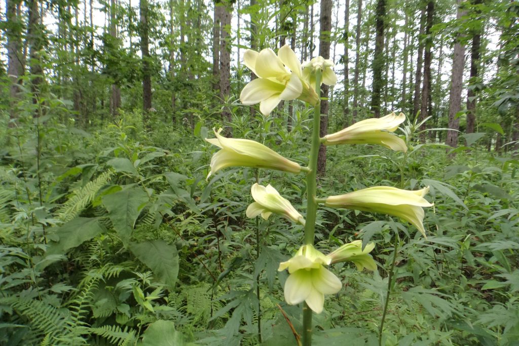 もうひとつ、オオウバユリが気になる存在である理由は、多年草であること。多年草がそこにあるということは、その土地が自然的にも人為的にも地表が撹拌されることなく、長く残されてきた場所であるという証拠でもあります。オオウバユリの葉は大きくてよく目立ちますので(前編参照)、春先にトレイルを歩き始めて、先シーズンと同じ場所で見つけると、「やぁ、また会えたね。今年もよろしく!」なんて気分になってしまいます。