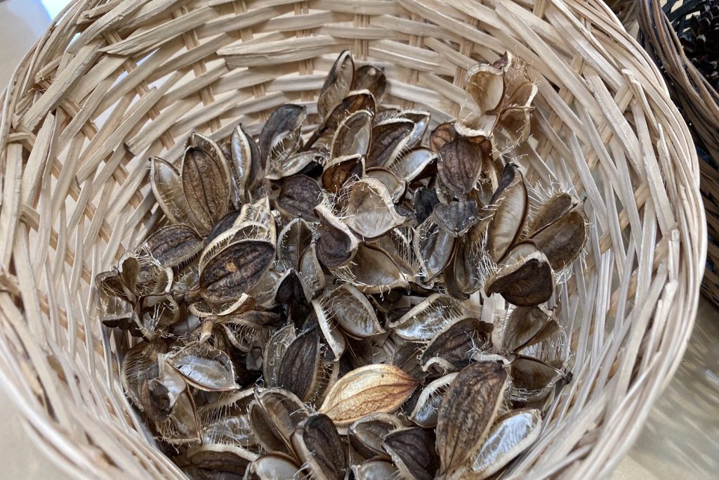 種が抜けた後の朔果。手芸用品店などで販売されているのを見かけることも。